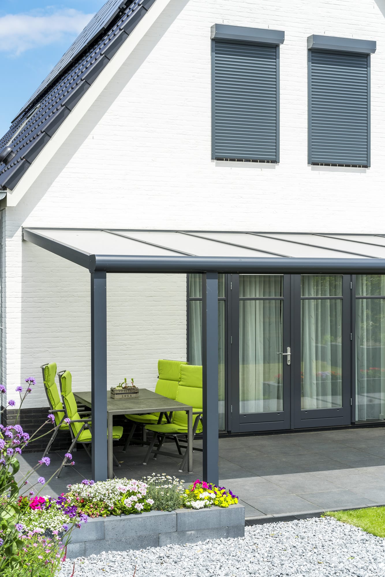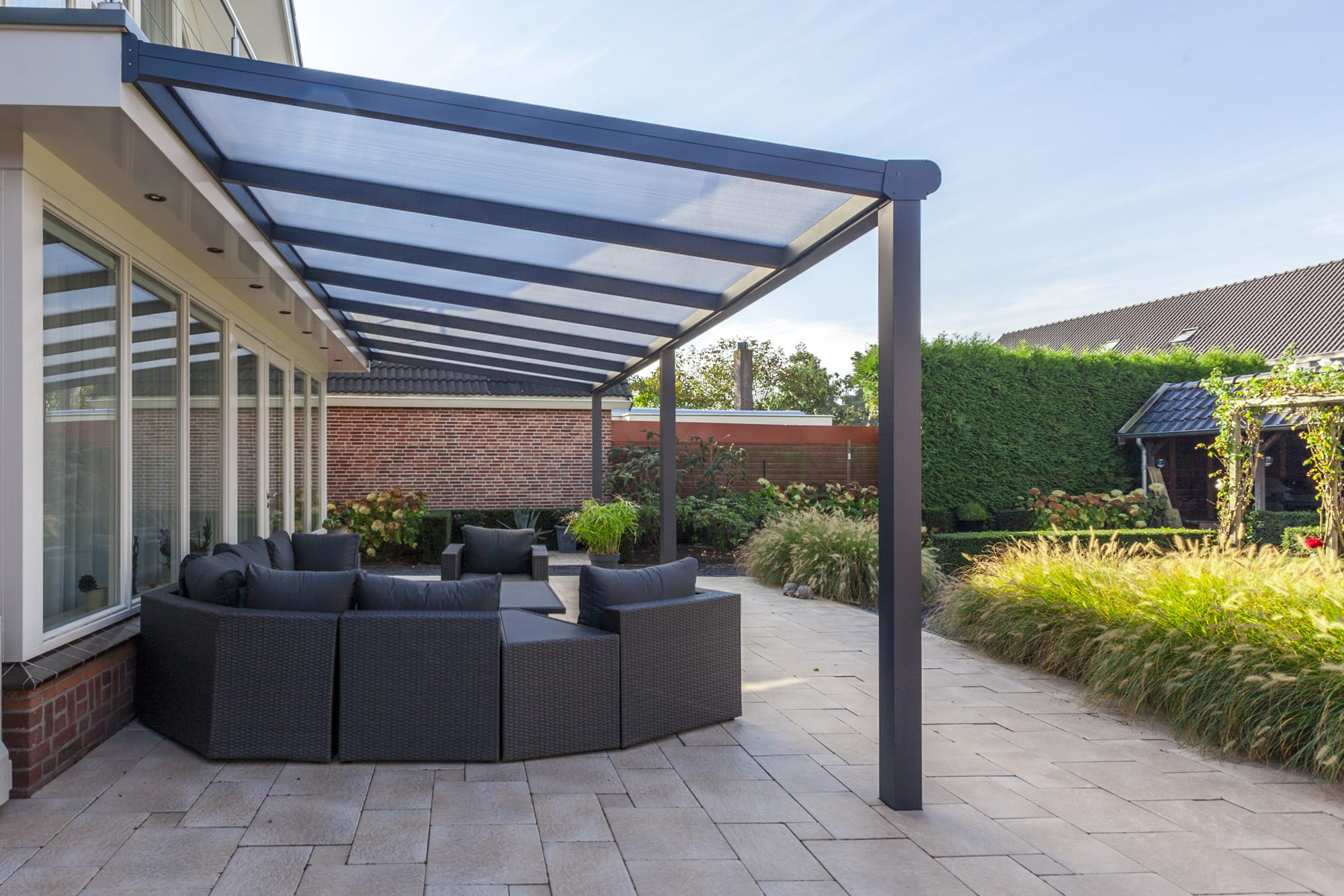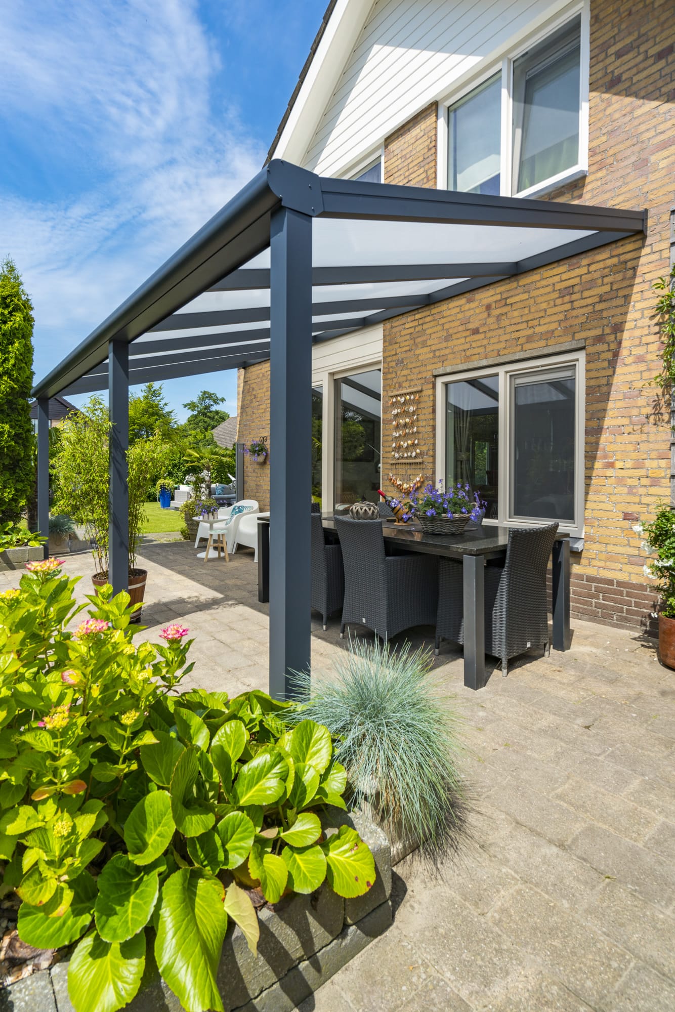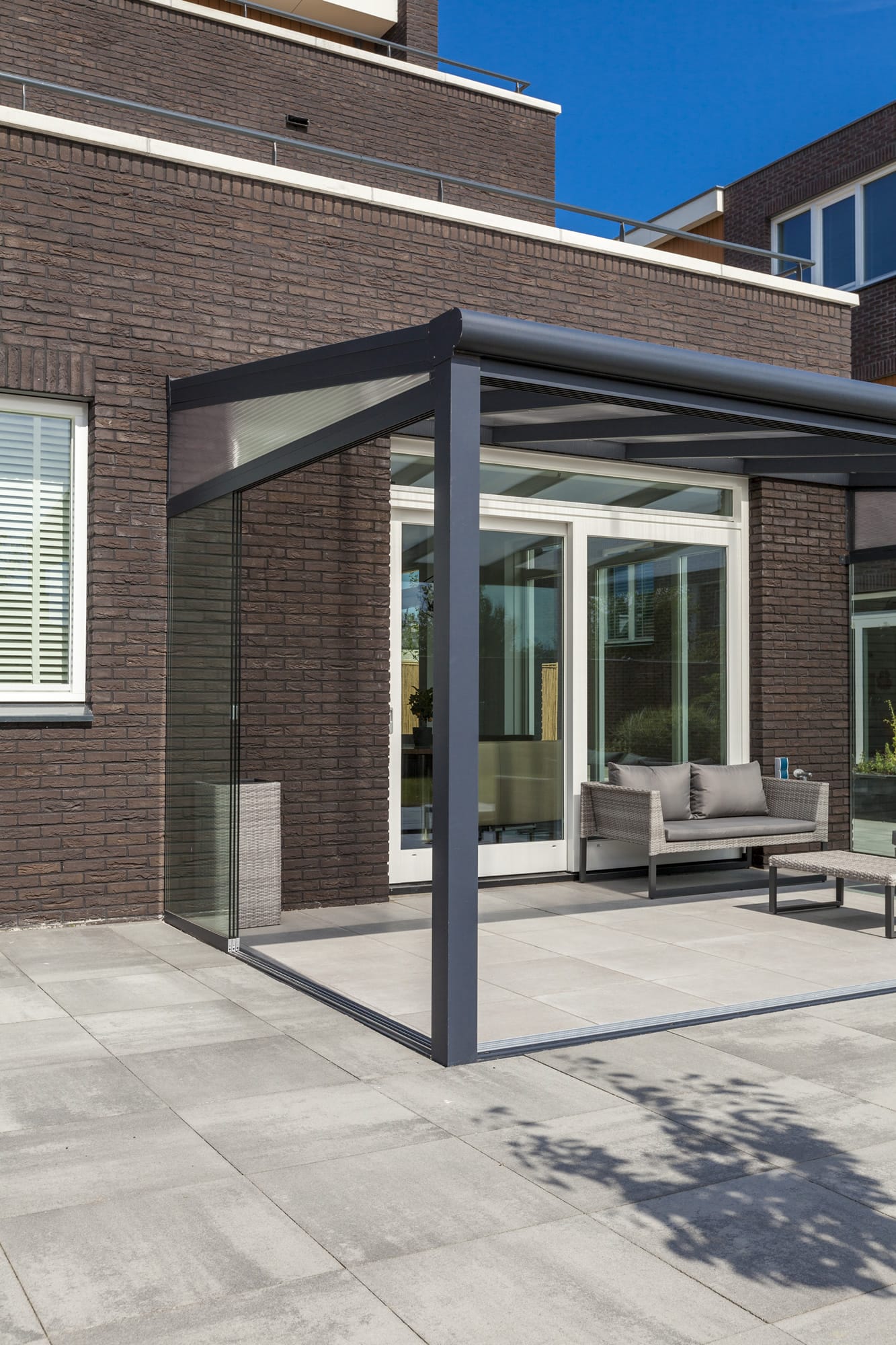 Because of our modular system, the possibilities with the Bosco are endless and suitable for every situation and every style. It’s available in the colours RAL9005, RAL9016, RAL7024 and RAL9001. For the polycarbonate roofing, you can choose from clear, ultra clear, opaque and solar control. Optionally, this veranda can be fitted with various accessories, such as a side gable, sidewall, glass sliding doors or LED lighting.
