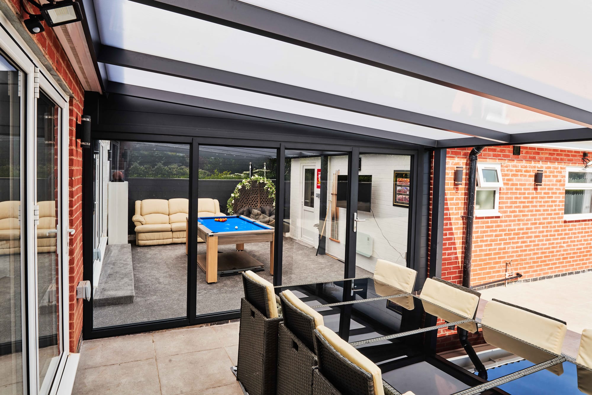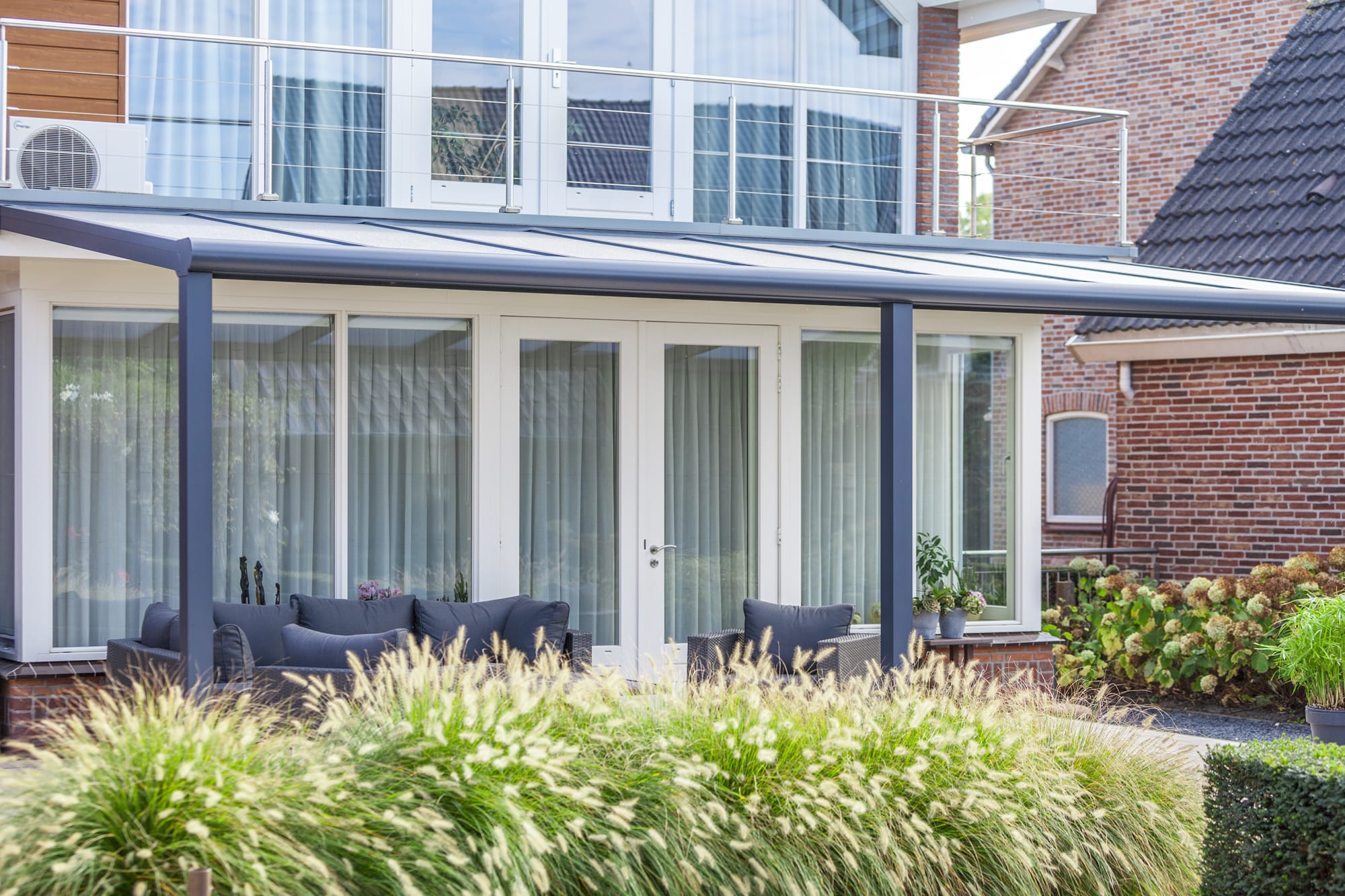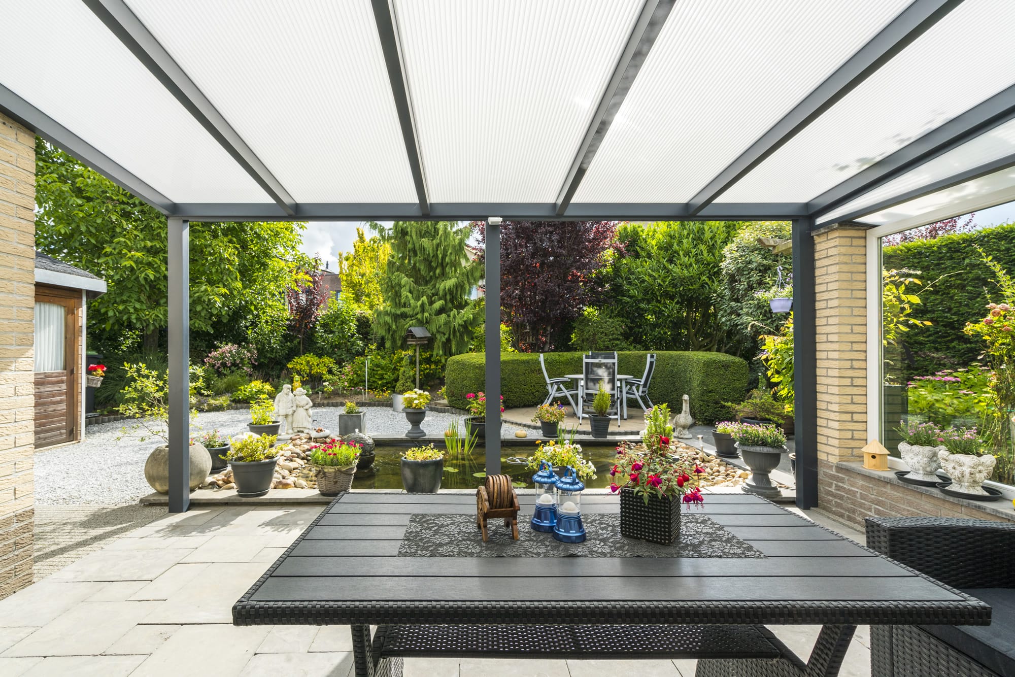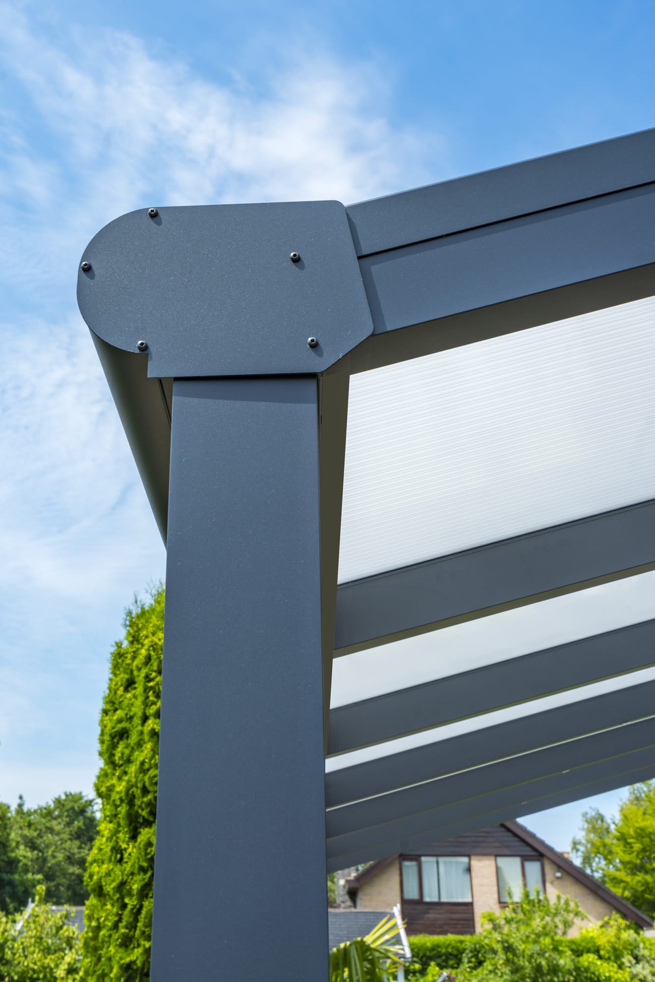 Because of our modular system, the possibilities with the Bosco are endless and suitable for every situation and every style. It’s available in the colours RAL9005, RAL9016, RAL7024 and RAL9001. For the polycarbonate roofing, you can choose from clear, ultra clear, opaque and solar control. Optionally, this veranda can be fitted with various accessories, such as a side gable, sidewall, glass sliding doors or LED lighting.