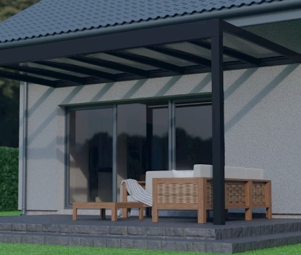 Discover the modern character of this cubic roof. The Pinela Glass stands out for its clearn and stylish design. The glass roof, with extra-wide glass panels, creates an abundance of natural light. This veranda offers an impressive maximum span of 7 meters on just 2 uprights. As a result, you will experience a stylish veranda with a crystal-clear and spacious feel.