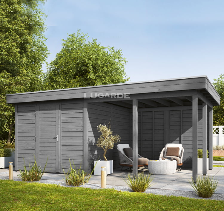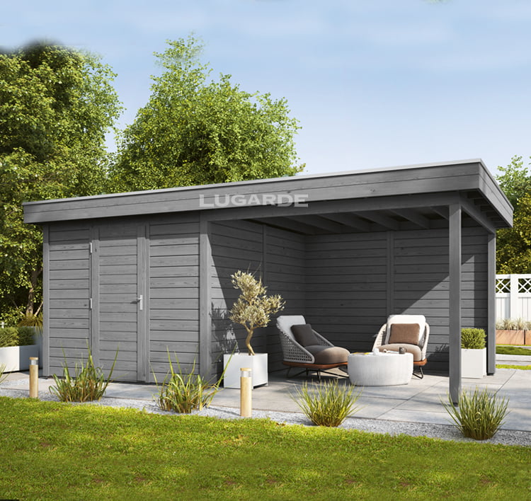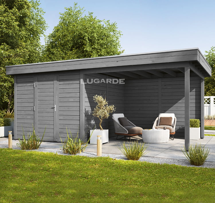 This modern summer house is made of spruce and will certainly not look out of place in your garden. Summer house V2 has the best of two worlds: a generous storage room and a space to create a cosy seating area. This way you can store all your belongings safely and dry, but you also have an awning where you can place a garden set or lounge set.5.6m x 3m