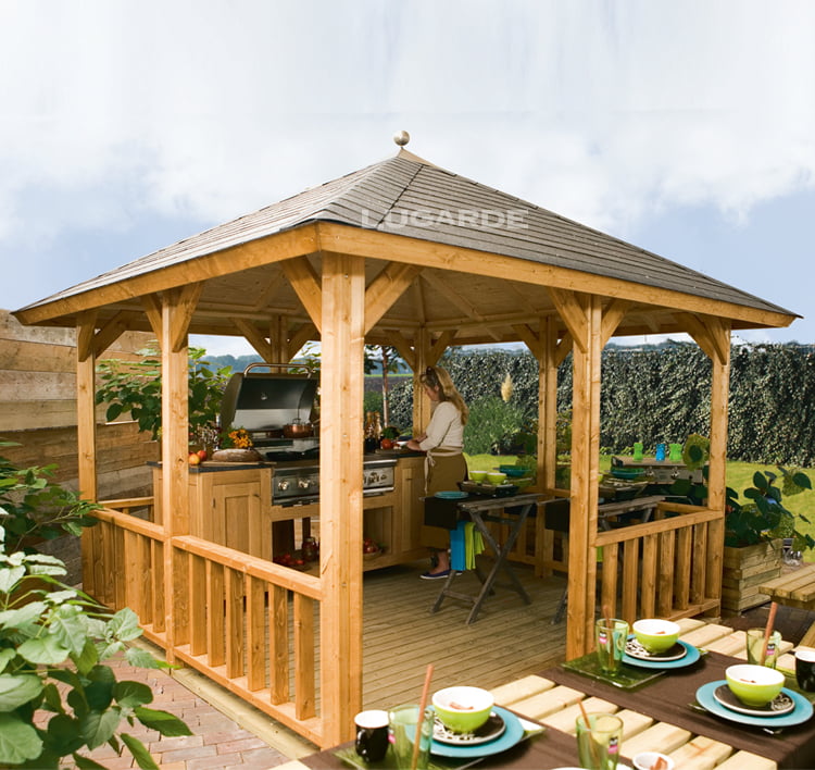 Do you like to barbecue? Then it’s good to know that this gazebo can also be designed as an outside kitchen, to prevent your fun evening from being disrupted by a sudden rain shower, for example.